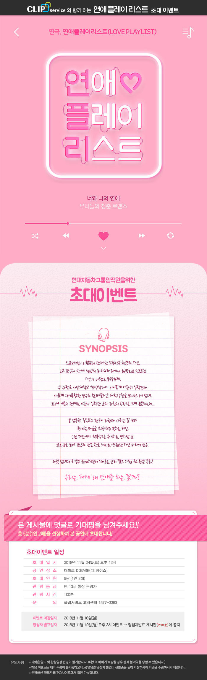 연극 〈연애플레이리스트〉 초대이벤트!