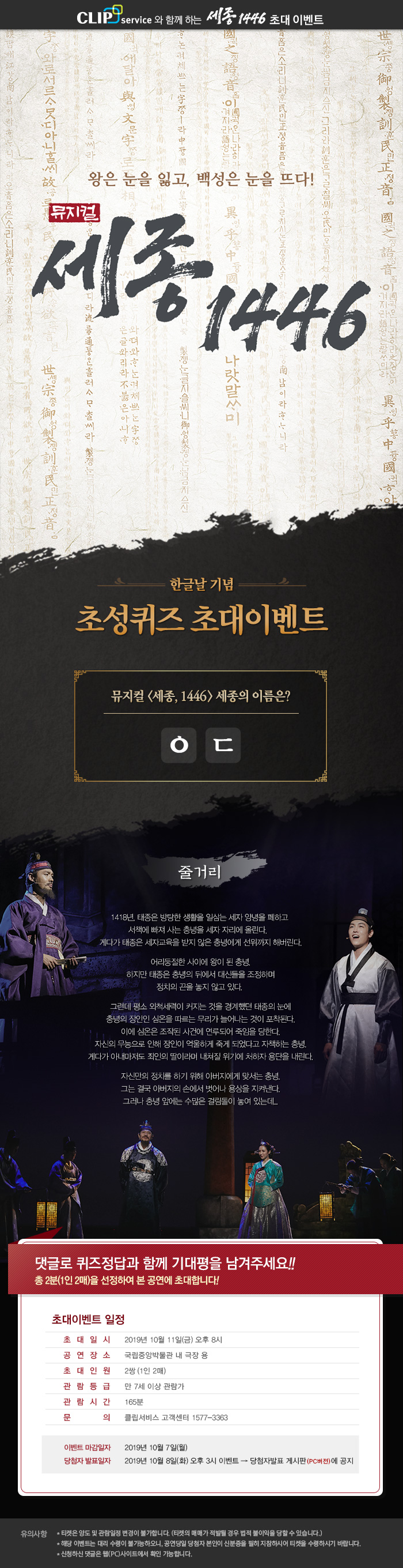 뮤지컬 <세종, 1446> 초대이벤트!