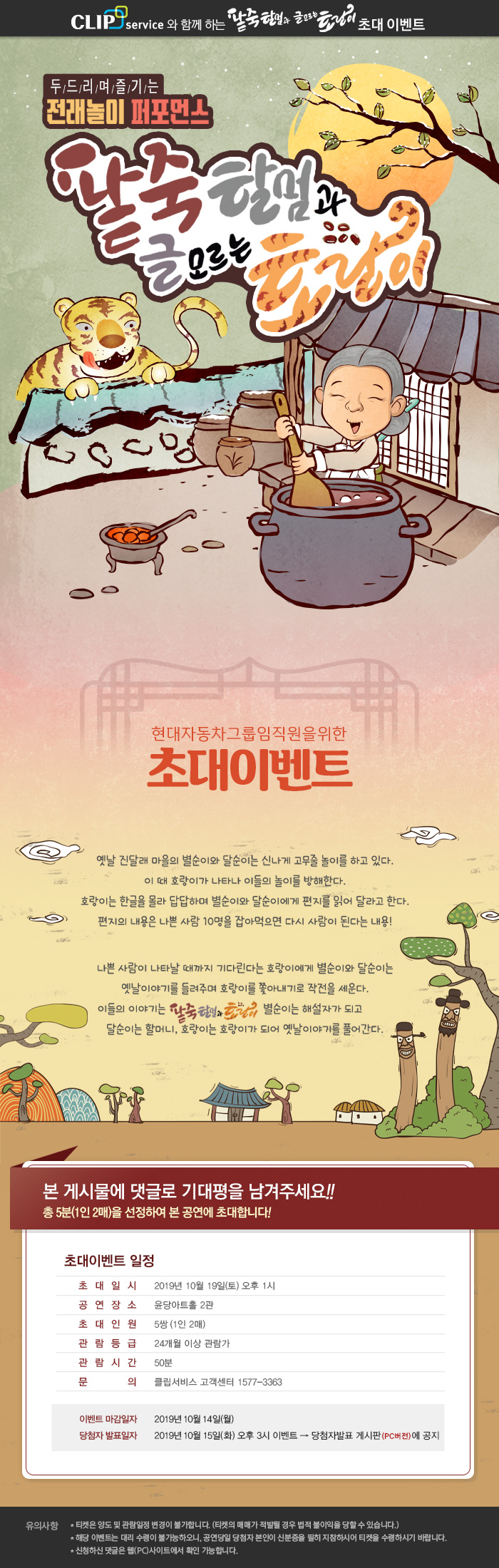 전래동화퍼포먼스 <팥죽할멈과 글모르는 호랑이> 초대이벤트!