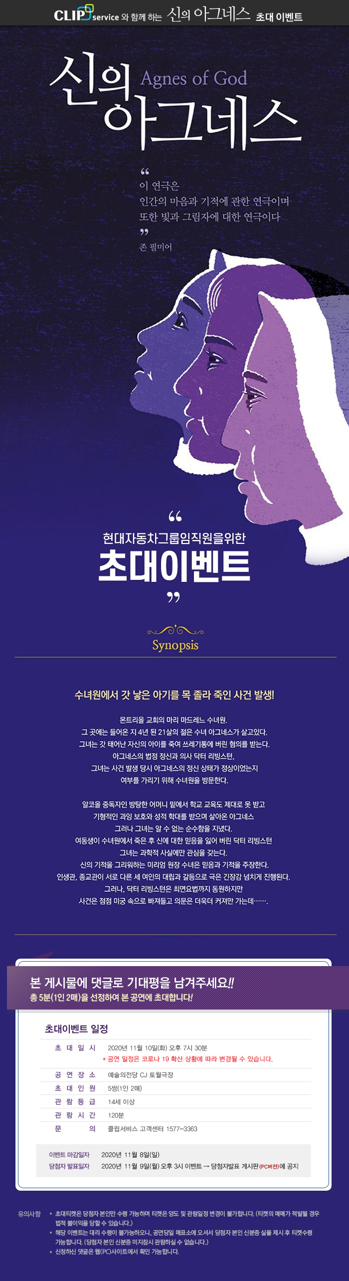 2020 예술의전당 연극〈신의 아그네스〉 초대이벤트!