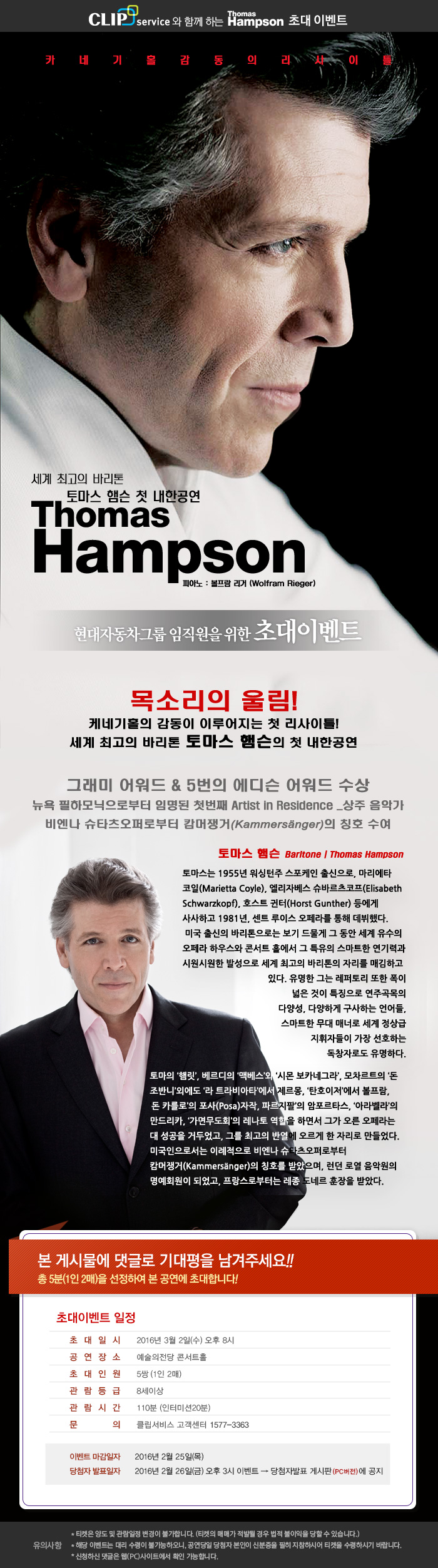 <토마스햄슨 첫 내한공연> 초대이벤트!