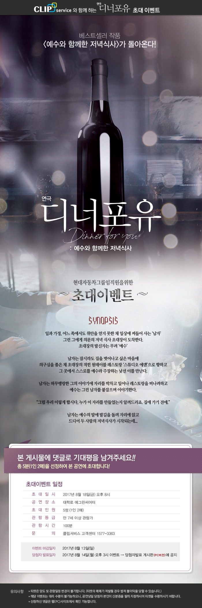 연극<디너 포 유 (부제:낯선 이와 함께한 저녁식사)>초대 이벤트!